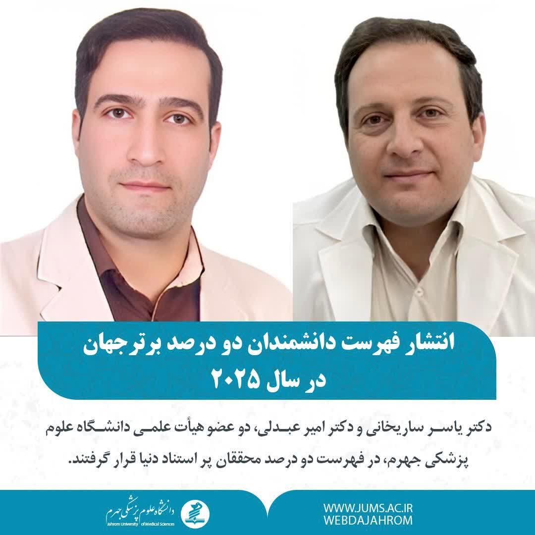 ▪️ بر اساس آخرین رتبه‌بندی معتبر جهانی که توسط دانشگاه استنفورد منتشر شد، دو عضو هیات علمی دانشگاه علوم پزشکی جهرم در فهرست دانشمندان دو درصد برتر و پراستناد جهان در سال ۲۰۲۵ قرار گرفتند.